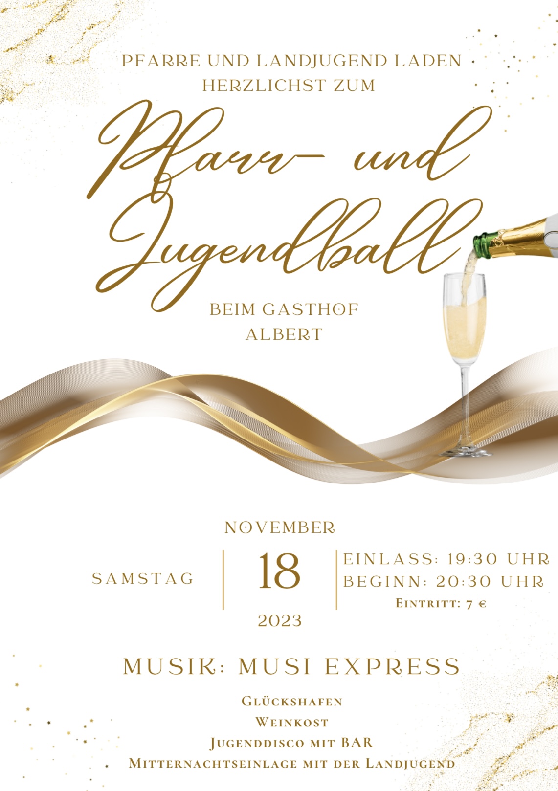 Am Samstag, den 18. November, findet beim GH Albert in Ratten der Pfarr- und Jugendball statt.🤩